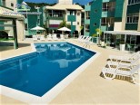 Apartamento em condomínio na quadra do mar, com sala de estar e jantar integradas com tv, wi-fi, 1 suíte e 1 dormitório com ar-condicionado, 1 banheiro social, cozinha e área de serviço.