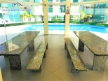 O condomínio possui piscina adulto e infantil com cadeiras, mesas, espreguiçadeiras e guarda-sol, área de churrasqueira, quadra poliesportiva e Playground,