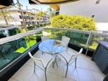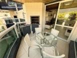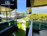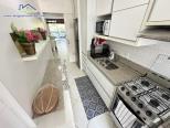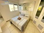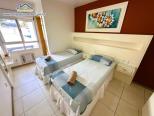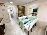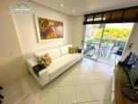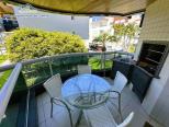 Apartamento em condomínio de frente para o mar com, sala de estar e jantar integradas com Tv e Wifi, sacada com churrasqueira com vista para o jardim, 1 suíte e 1 dormitório com ar condicionado, 1 banheiro social, cozinha e área de serviço.