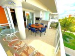 Apartamento em condomínio de frente para o mar, com sala de estar e jantar integradas com tv, wi-fi e ar-condiconado, sacada com churrasqueira, lavabo, 1 suíte e 2 dormitórios com ar-condicionado, 1 banheiro social, cozinha e área de serviço.