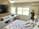 Apartamento em condomínio de frente para o mar, com sala de estar e jantar integradas com tv, wi-fi e ar-condiconado, sacada com churrasqueira, lavabo, 1 suíte e 2 dormitórios com ar-condicionado, 1 banheiro social, cozinha, área de empregada, e área de serviço.