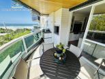 Apartamento em condomínio de frente para o mar com, sala de estar e jantar integradas com Tv, Wifi e ar condicionado, sacada com churrasqueira com vista para o mar, lavabo, 1 suíte e 2 dormitórios com ar condicionado, 1 banheiro social, cozinha e área de serviço.
