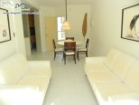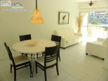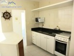 Apartamento em condomínio na quadra do mar, com sala de estar e jantar integradas com tv, 1 suíte e 1 dormitório com ar-condicionado, 1 banheiro social, cozinha e área de serviço.