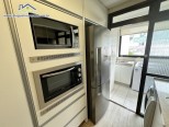 Apartamento em condomínio de frente para o mar, com sala de estar, jantar e área de churrasqueira integradas com tv, wi-fi e ar-condicionado, 1 suíte e 1 dormitório com ar-condicionado, 1 banheiro social, cozinha e área de serviço. Localizado no condomínio América do sol de frente pro mar na Praia Brava. O imóvel aconchega 06 pessoas, ideal para famílias que buscam conforto e entretenimento na praia e descansar na beira da Piscina.