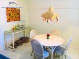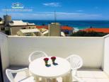 Cobertura duplex em condomínio na quadra do mar. O imóvel possui no 1° piso sala de estar e jantar integradas com tv e wi-fi, sacada com churrasqueira, 1 suíte com ar-condicionado e 1 banheiro social, cozinha e área de serviço, no 2° piso 2 suítes com ar-condicionado e sacada com vista para o mar.