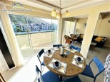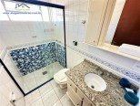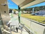 Cobertura duplex em condomínio na quadra do mar, No 1° piso 1 suíte e 2 dormitórios com ar-condicionado, 1 banheiro social e área de serviço. No 2° piso sala de estar, sala de jantar e área de churrasqueira integradas com tv e wi-fi e ambas com sacada com vista pro mar, lavabo e cozinha