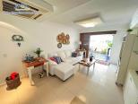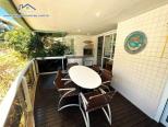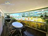 Apartamento térreo em condomínio de frente para o mar com, sala de estar e jantar integradas com Tv, Wifi e ar condicionado, sacada com churrasqueira, lavabo, 3 suítes com ar-condicionado, cozinha e área de serviço.